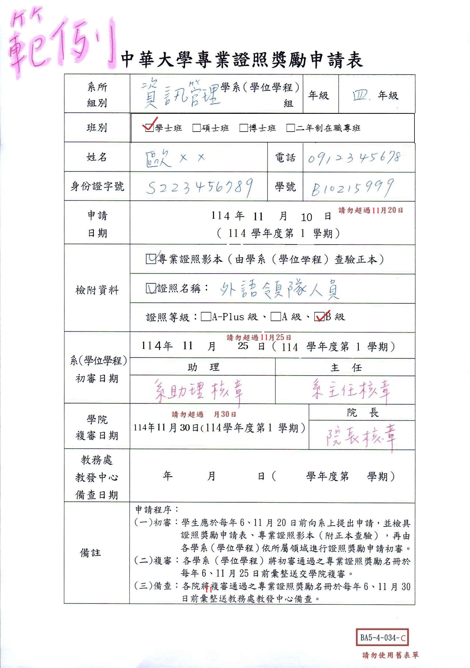 附件二.【BA5-4-034-C】專業證照獎勵申請表(114-1).docx